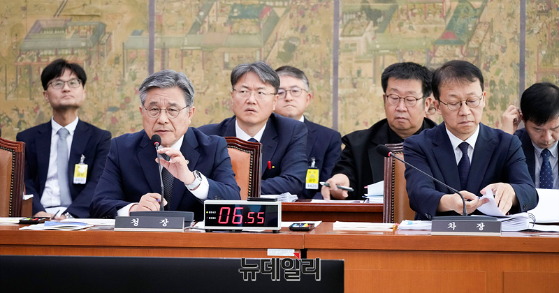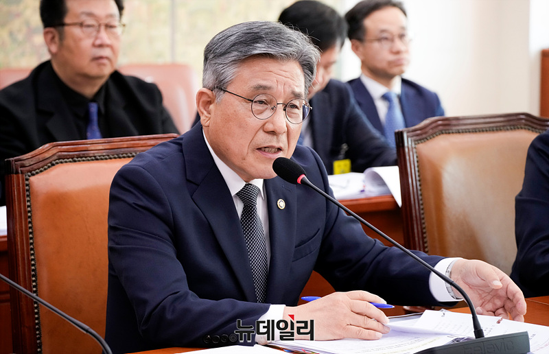 허민 국가유산청장이 16일 오전 국회에서 열린 문화체육관광위원회 국정감사에서 의원들의 질의에 답하고 있다.
