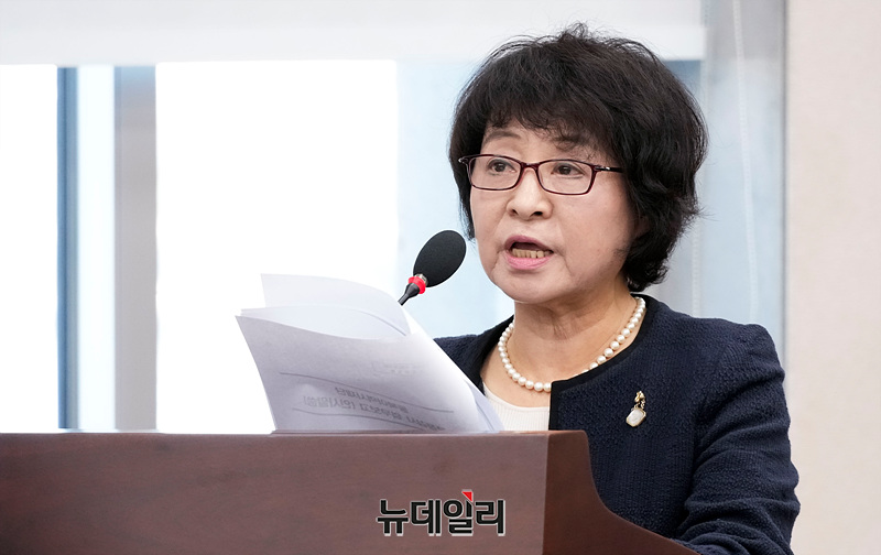 박지향 동북아역사재단 이사장이 16일 오전 국회에서 열린 교육위원회 국정감사에서 업무보고를 하고 있다.