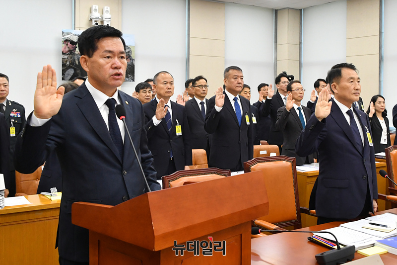 석종건 방위사업청장이 17일 오전 국회 국방위원회에서 열린 2025년 국정감사에서 선서를 하고 있다.