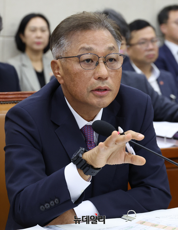 강중구 건강보험심사평가원장이 17일 국회 보건복지위에서 열린 2025년도 건강보험공단과 건강보험 심평원에 대한 국정감사에 출석해 의원들의 질문에 답하고 있다.