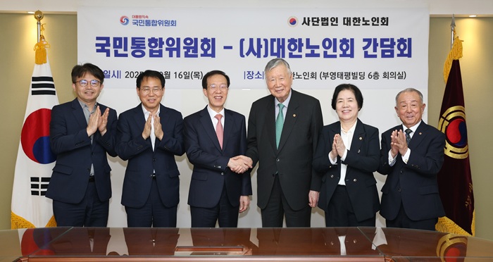 이 위원장은 이 자리에서 이중근 회장과 초고령사회 진입에 따라 발생하고 있는 '노인연령 상향', '노인 돌봄' 등 노인 문제의 시급성에 공감하고, 향후 통합위와 대한노인회가 대안 마련을 위해 협력해 나가기로 했다.