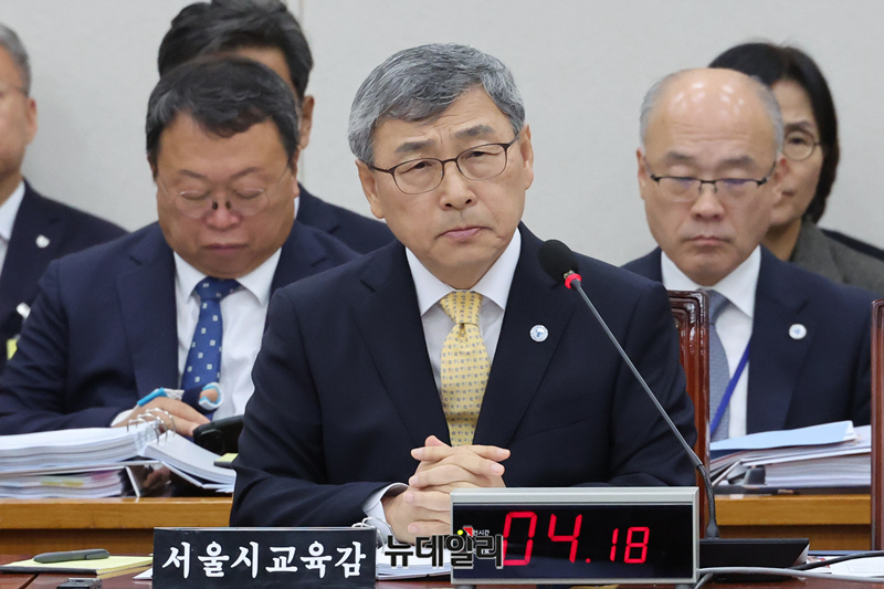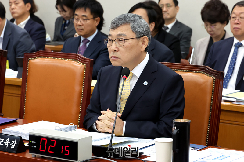 정근식 서울시교육청 교육감이 20일 오전 국회에서 열린 교육위원회 국정감사에서 의원 질의에 답변하고 있다.