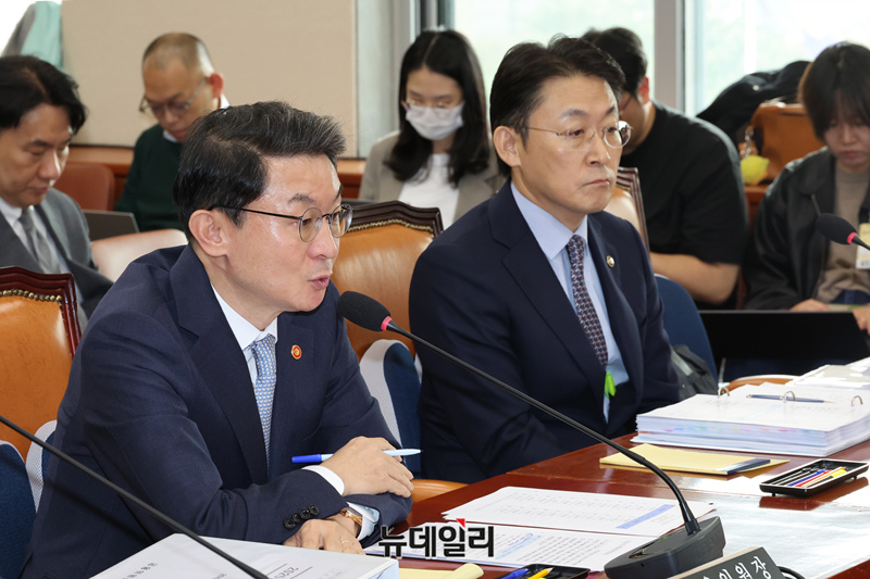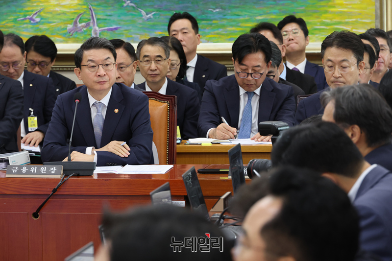이억원 금융위원장이 20일 국회에서 열린 정무위원회의 금융위원회 등 국정감사에서 의원들의 질문에 답하고 있다.