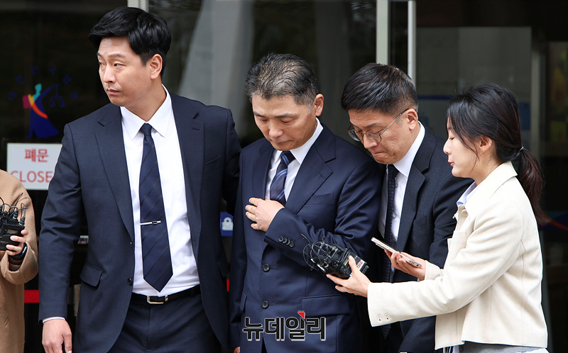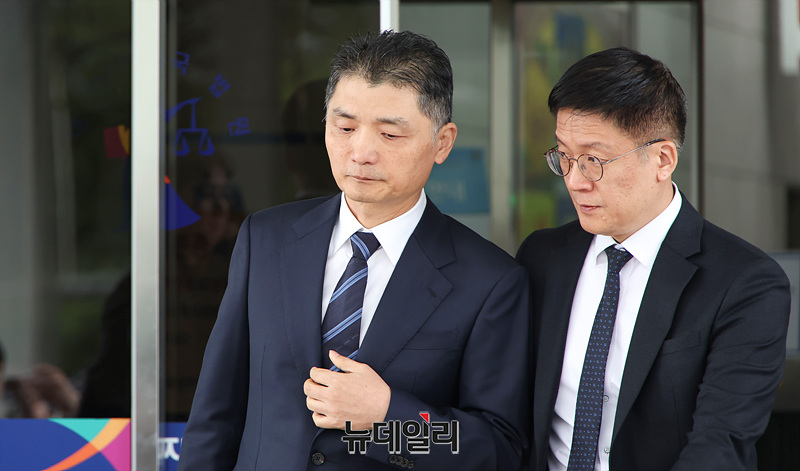김범수 카카오 경영쇄신위원장이 21일 오전 서울 양천구 서울남부지법에서 열린 SM엔터테인먼트 시세 조종 혐의 1심 공판에서 무죄를 선고받고 법원을 나서고 있다.