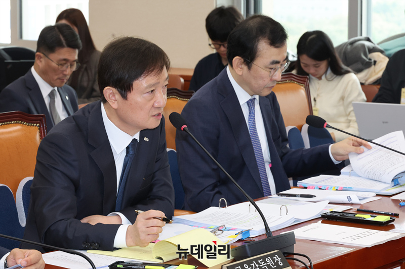 이찬진 금융감독원장이 21일 오전 국회에서 열린 정무위원회 국정감사에 출석해 의원들의 질문에 답하고 있다.