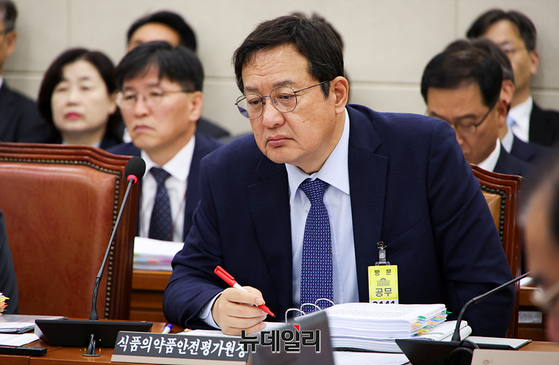 강석연 식품의약품안전평가원장이 21일 오후 국회에서 열린 보건복지위원회 국정감사에 출석해 자리하고 있다.