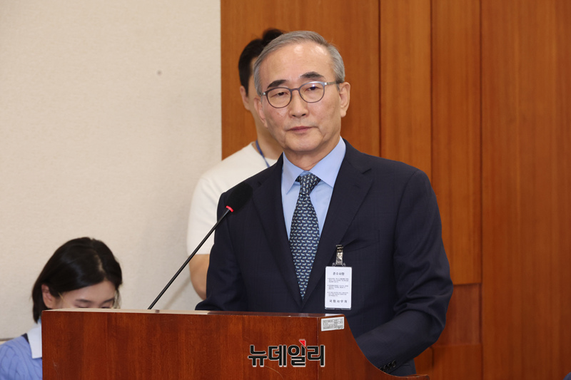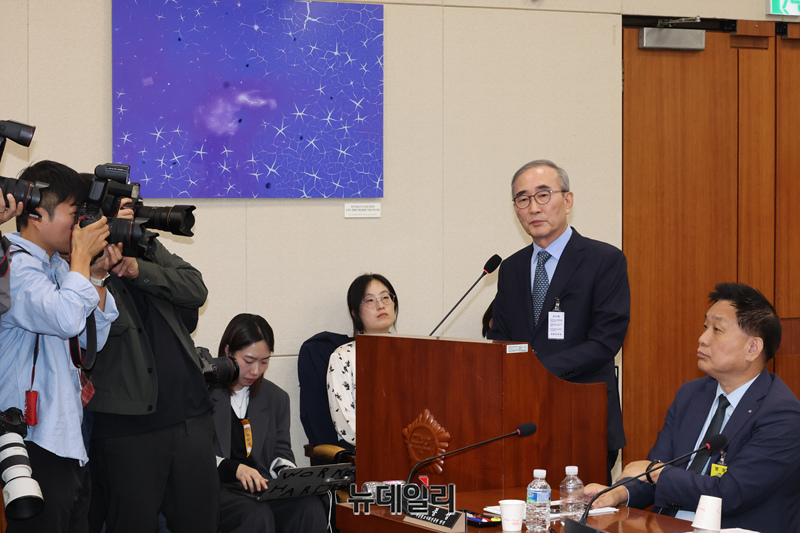 김영섭 KT 대표이사가 21일 국회에서 열린 과학기술정보방송통신위원회의 정보통신산업진흥원 등 국정감사에 출석해 의원들의 질의에 답하고 있다.