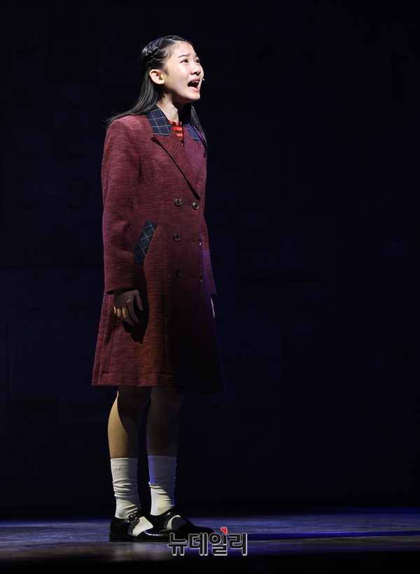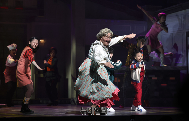 아역배우 설가은이 21일 오후 서울 송파구 샤롯데씨어터에서 열린 뮤지컬 '미세스 다웃파이어' 프레스콜에서 하이라이트 장면을 시연하고 있다.2022년 국내 초연된 뮤지컬 '미세스 다웃파이어'는 1993년 개봉된 로빈 윌리암스 주연의 할리우드 동명 영화가 원작이다. 이혼 후 아이들과 떨어져 지내게 된 아빠 다니엘이 유모 미세스 다웃파이어로 변장해 다시 가족의 곁으로 다가가는 이야기를 그린다.뮤지컬 '미세스 다웃파이어'는 12월 7일까지 서울 송파구 샤롯데씨어터에서 공연된다.