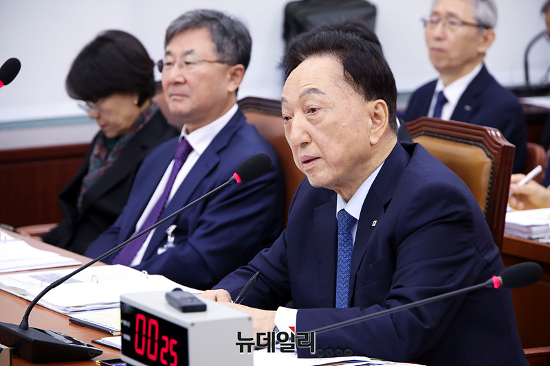 김철수 대한적십자사 회장이 22일 오전 국회에서 열린 보건복지위원회 국정감사에서 의원들의 질의에 답하고 있다.