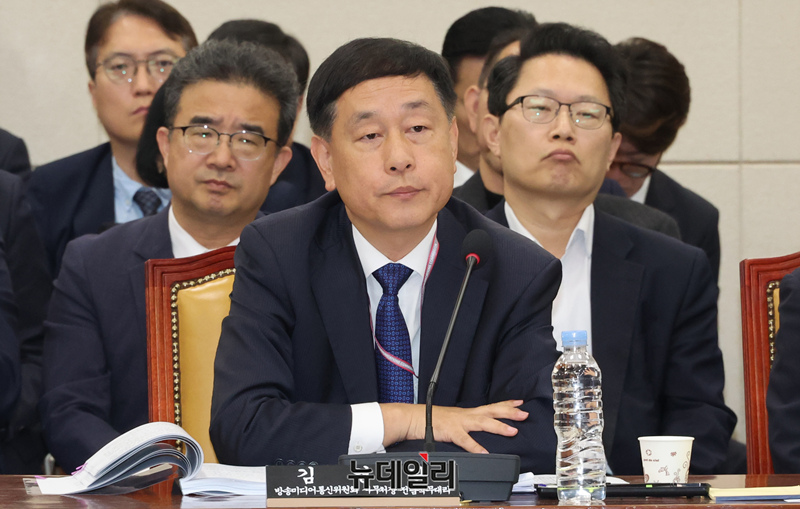 김영관 방송미디어통신위원회 사무처장 직무대리가 23일 오전 국회에서 열린 과학기술정보방송통신위원회 국정감사에서 의원 질의에 답변하고 있다.