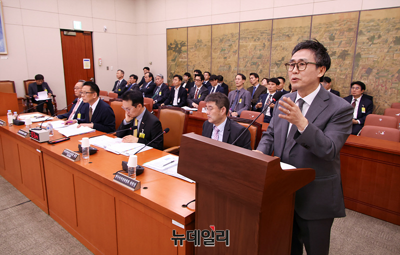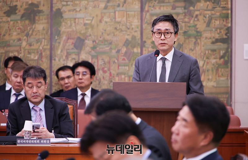 건국전쟁2를 연출한 김덕영 감독이 23일 오후 국회에서 열린 문화체육관광위원회 국정감사에 참고인 신분으로 출석해 발언하고 있다.