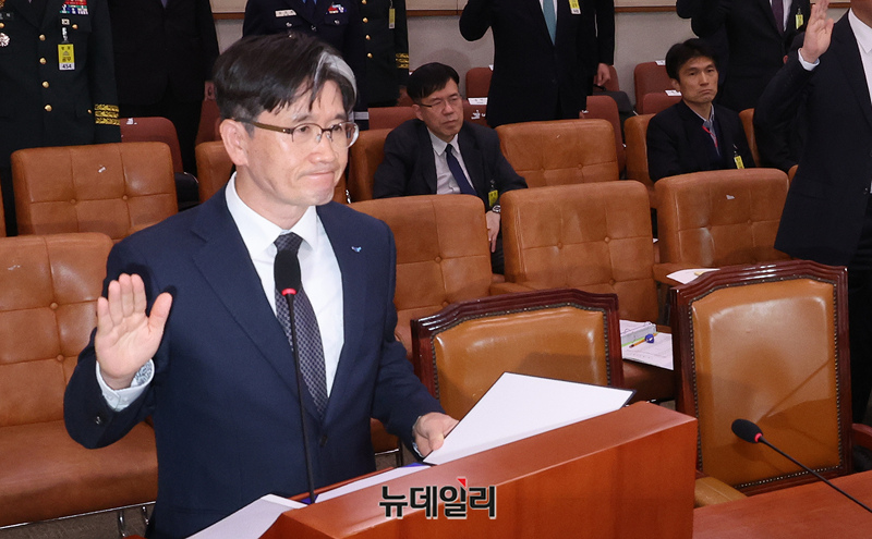 오동운 고위공직자범죄수사처장이 24일 오후 국회 법제사법위원회에서 열린 공수처에 대한 국정감사에 출석해 증인선서를 하고 있다.