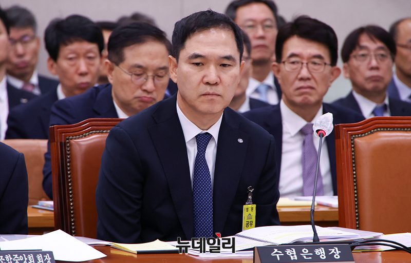신학기 수협은행 은행장이 27일 오후 국회에서 열린 농림축산식품해양수산위원회 국정감사에 출석해 자리하고 있다.