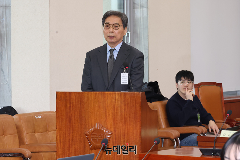 박영우 전 대유위니아그룹 회장이 27일 오후 국회 기후에너지환경노동위원회에서 열린 경제사회노동위원회 등에 대한 국정감사에 증인으로 출석해 질의에 답변을 하고 있다.