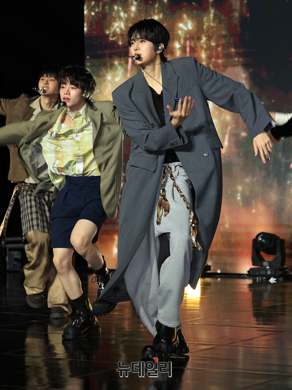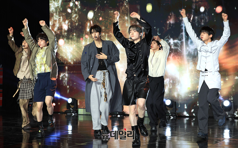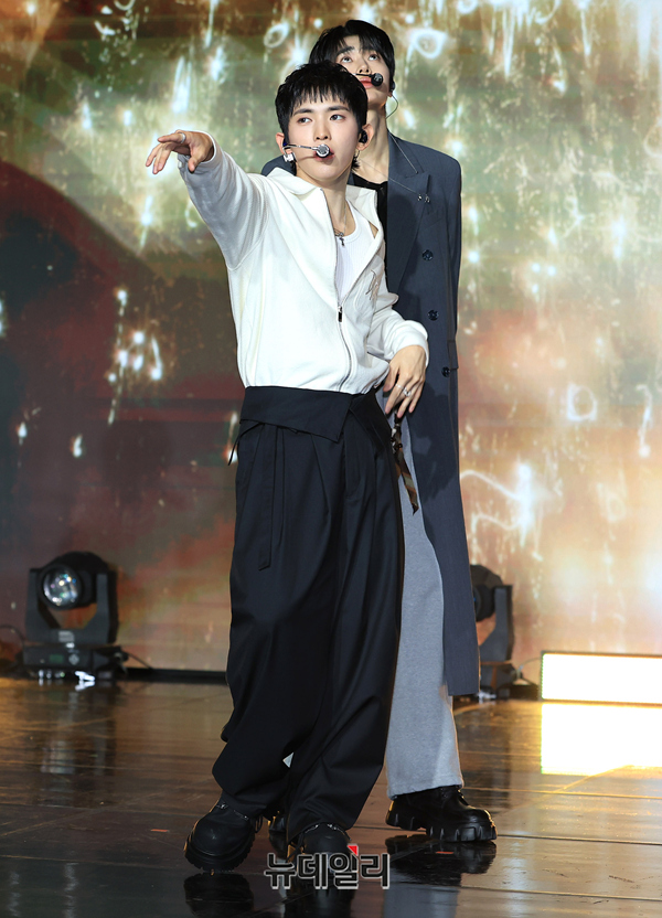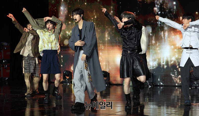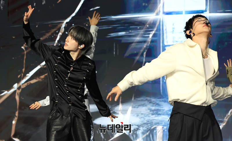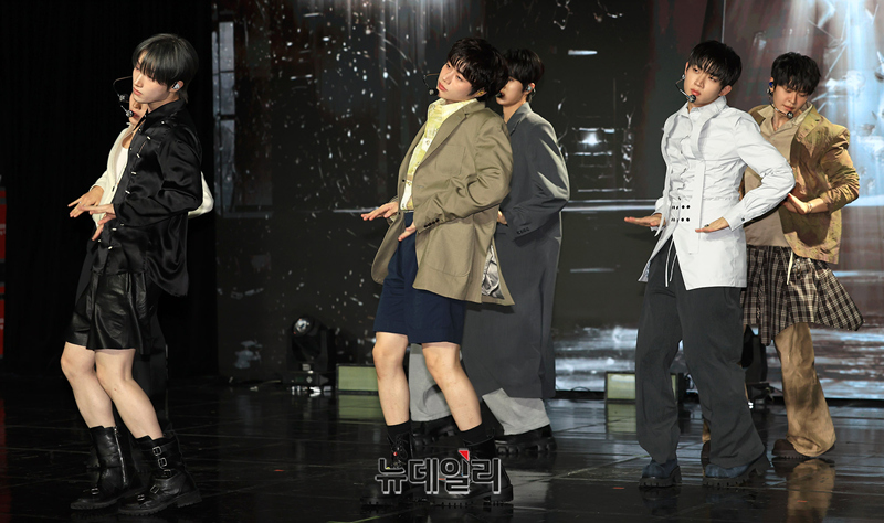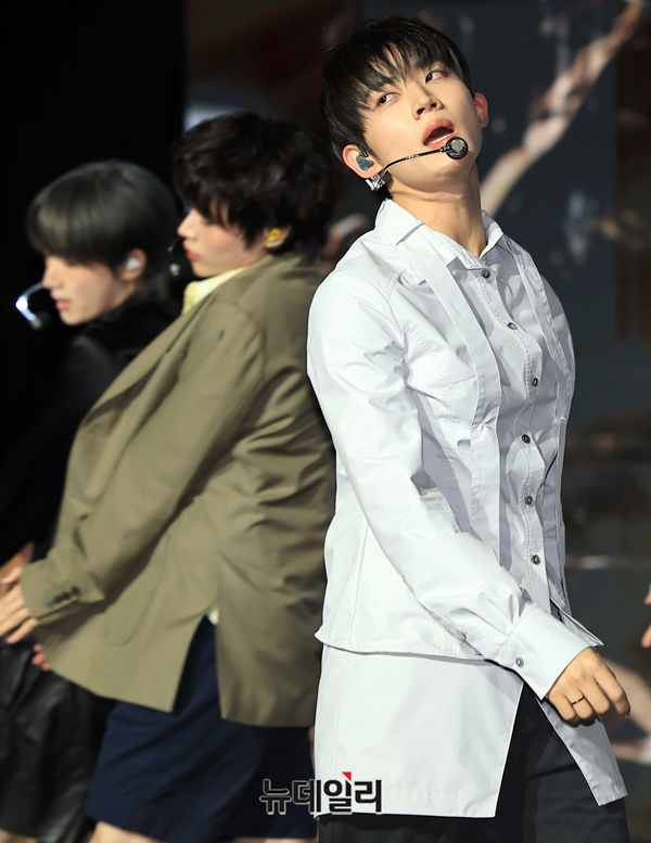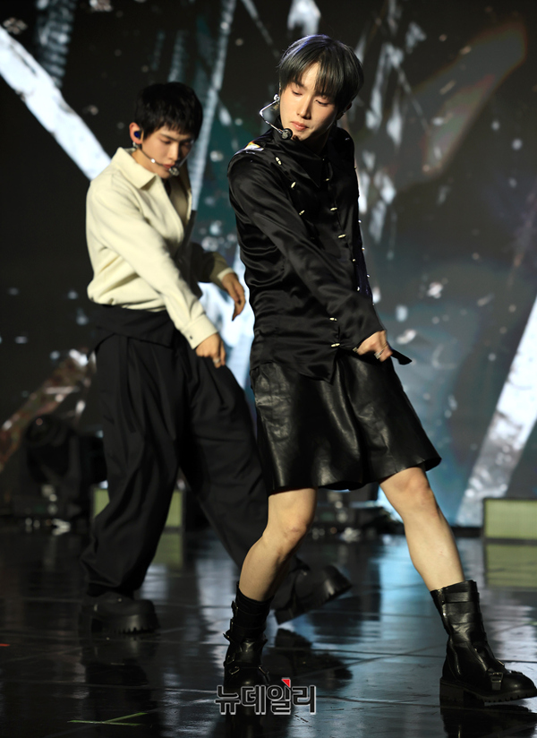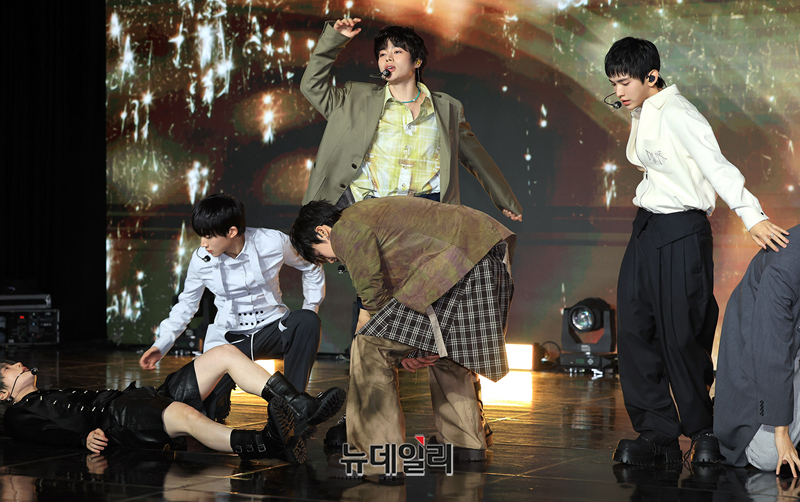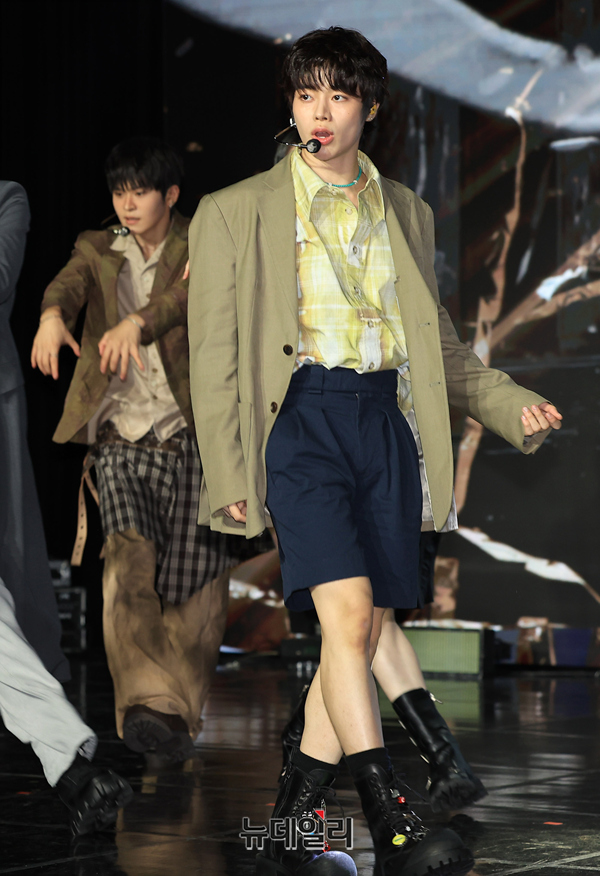 아이돌 템페스트가 27일 오후 서울 강남구 일지아트홀에서 열린 7번째 미니앨범 'As I am(에즈 아이엠)' 쇼케이스에서 타이틀곡 무대를 선보이고 있다.