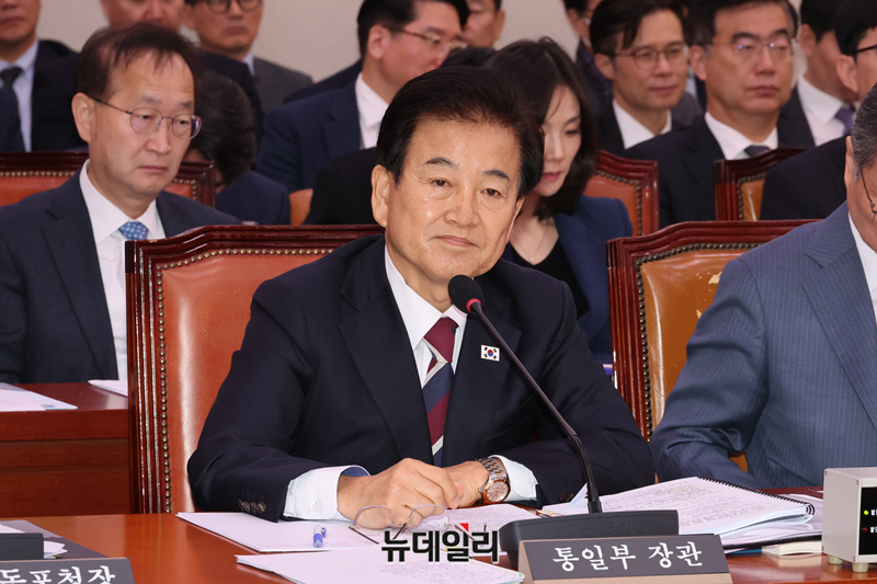 정동영 통일부 장관이 28일 오전 국회 외교통일위원회에서 열린 외교부·통일부 등에 대한 국정감사에서 질의에 답하고 있다.