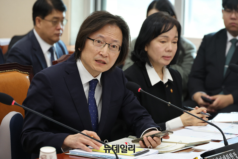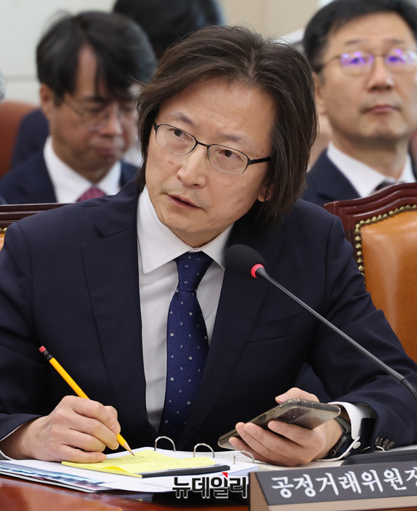 주병기 공정거래위원회 위원장이 28일 국회에서 열린 정무위원회의 국무조정실 등에 대한 종합감사에서 위원 질의에 답하고 있다.