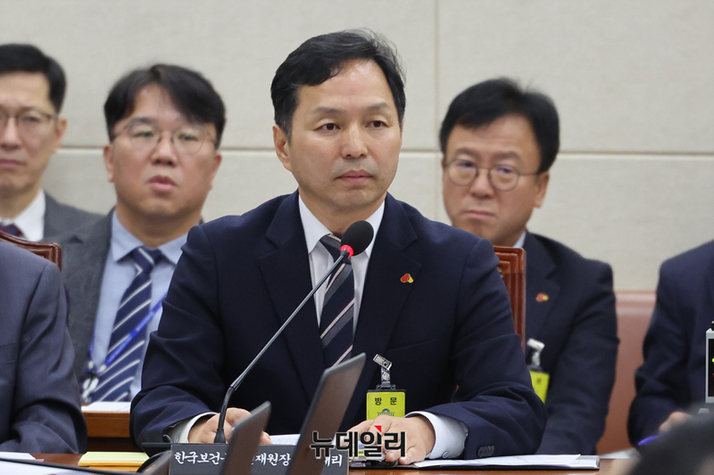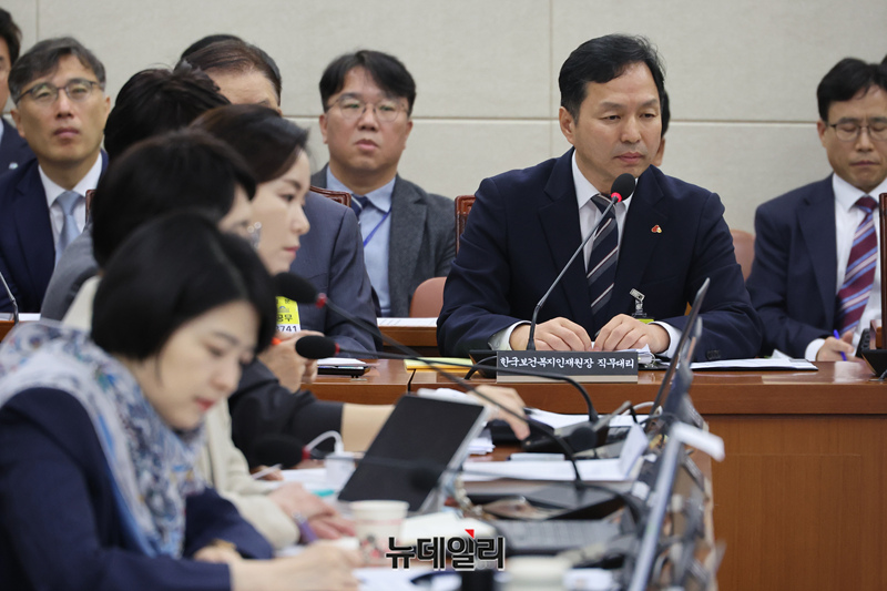 배남영 한국보건복지인재원 원장 직무대리가 28일 국회에서 열린 보건복지위원회 국정감사에서 질의에 답하고 있다.