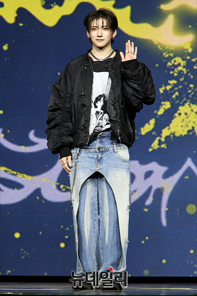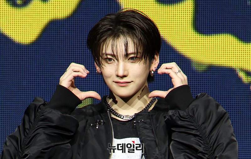 앤팀(&TEAM) 유마가 28일 오후 서울 용산구 블루스퀘어에서 열린 한국 데뷔 미니 1집 '백 투 라이프(Back to Life)' 발매 기념 미디어 쇼케이스에서 포즈를 취하고 있다.