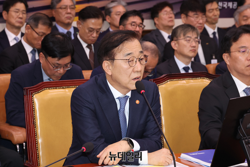 김윤덕 국토교통부 장관이 29일 국회에서 열린 국토교통위원회의 국토교통부 증에 대한 국정감사에서 의원들의 질문에 답하고 있다.