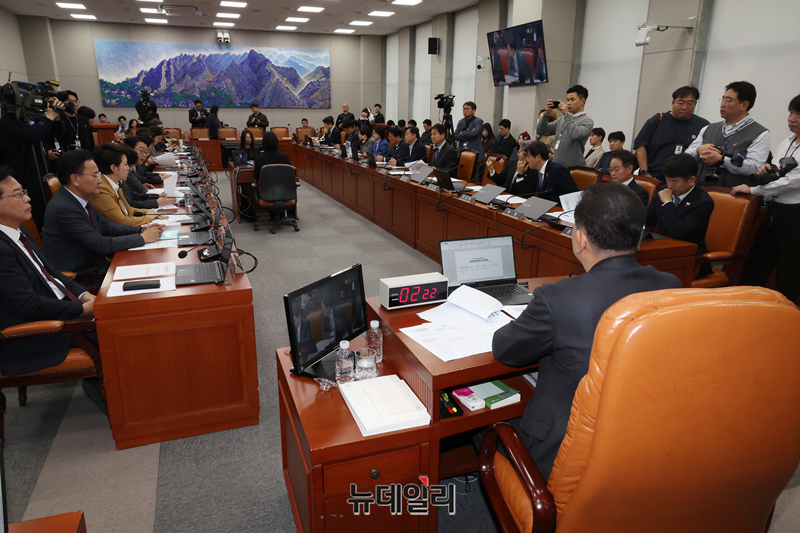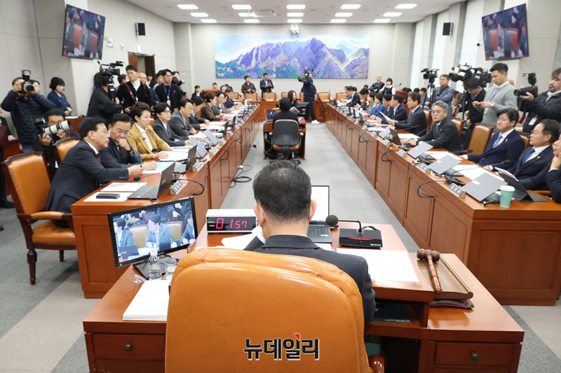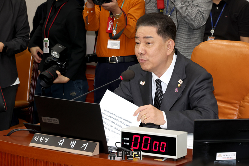 김병기 국회 운영위원장이 29일 국회에서 열린 국회운영위원회 전체회의에서 의사진행을 하고 있다.