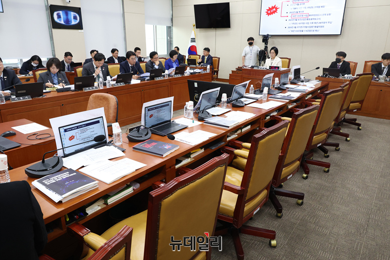 과학기술정보방송통신위원회에서 열린 과학기술정보통신부 등에 대한 국정감사가 29일 오후 국회에서 국민의힘 의원들이 퇴장한 가운데 진행되고 있다.
