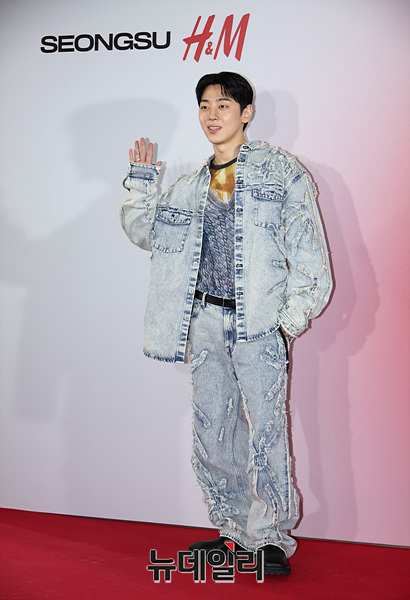 가수 그레이가 29일 오후 서울 성동구에서 열린 'H&M 성수' 매장 오픈 기념 포토월에서 포즈를 취하고 있다.