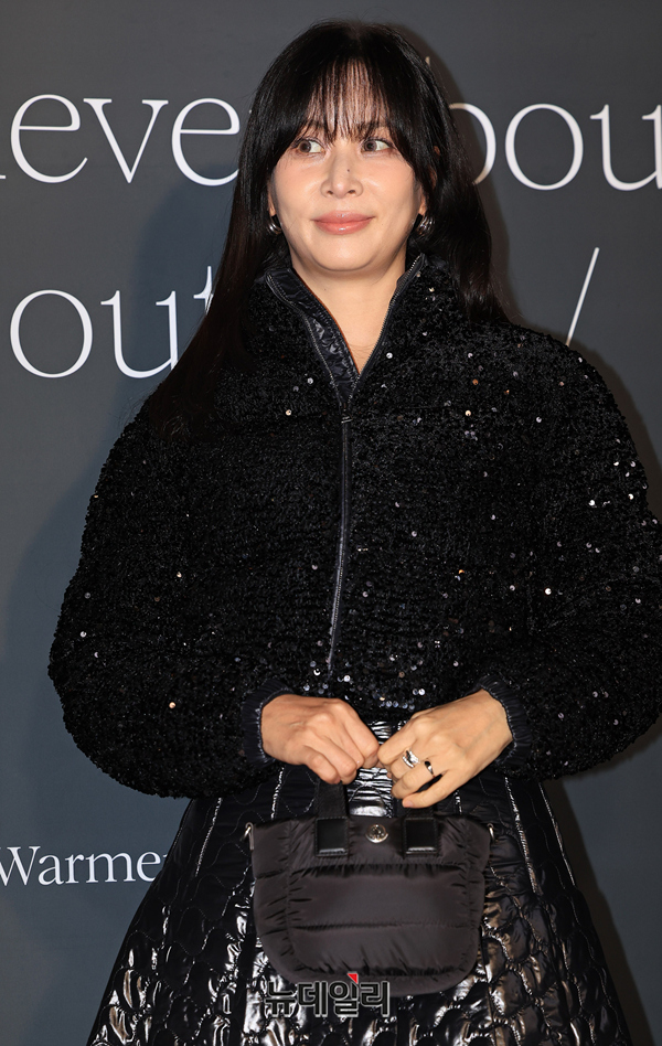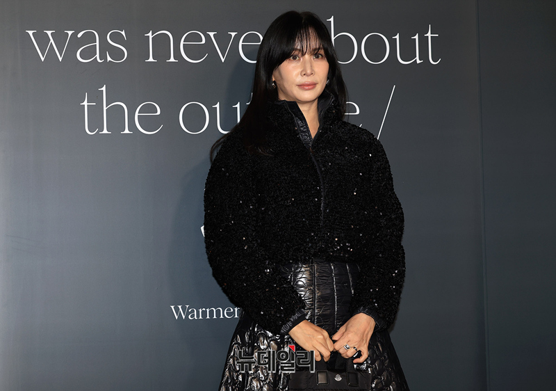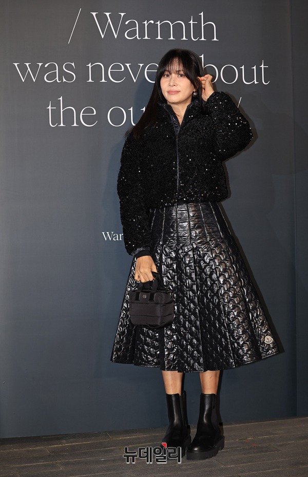 배우 고소영이 29일 오후 서울 강남구 몽클레르 서울 플래그십 스토어에서 열린 '워머 투게더(Warmer Together)' 스크리닝 이벤트에서 포즈를 취하고 있다.