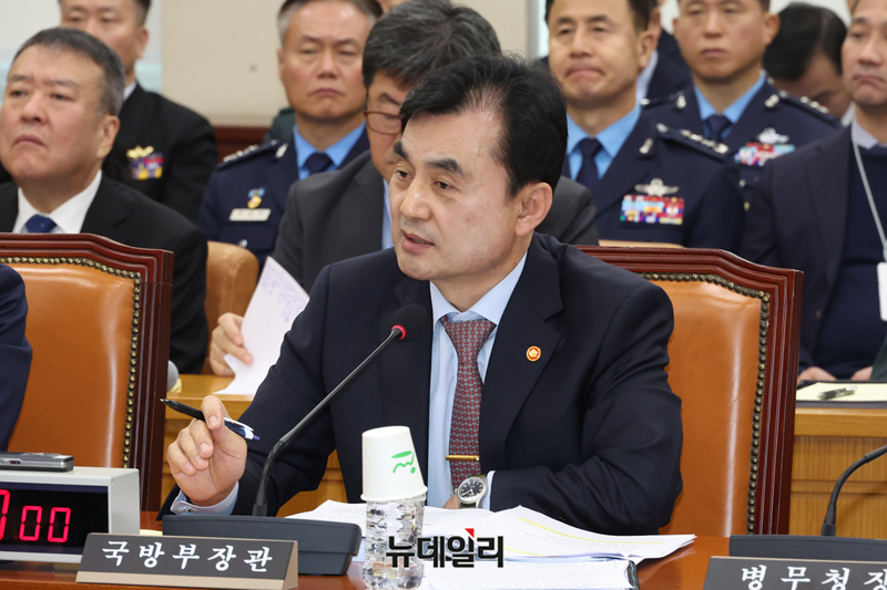 안규백 국방부 장관이 30일 국회 국방위원회에서 열린 국방부·소관 감사대상기관 전체에 대한 종합감사에서 의원 질문에 답하고 있다.