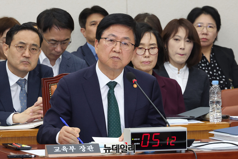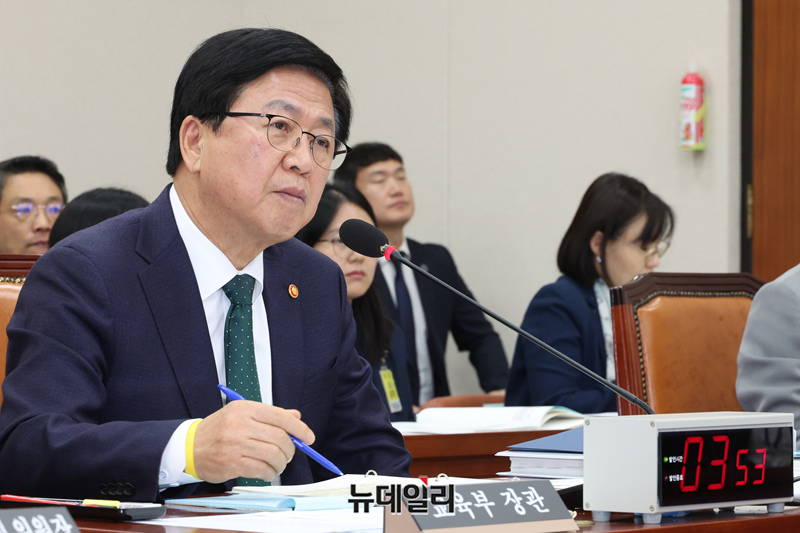 최교진 사회부총리 겸 교육부 장관이 30일 오전 국회 교육위원회에서 열린 종합감사에서 의원들의 질의에 답변하고 있다.