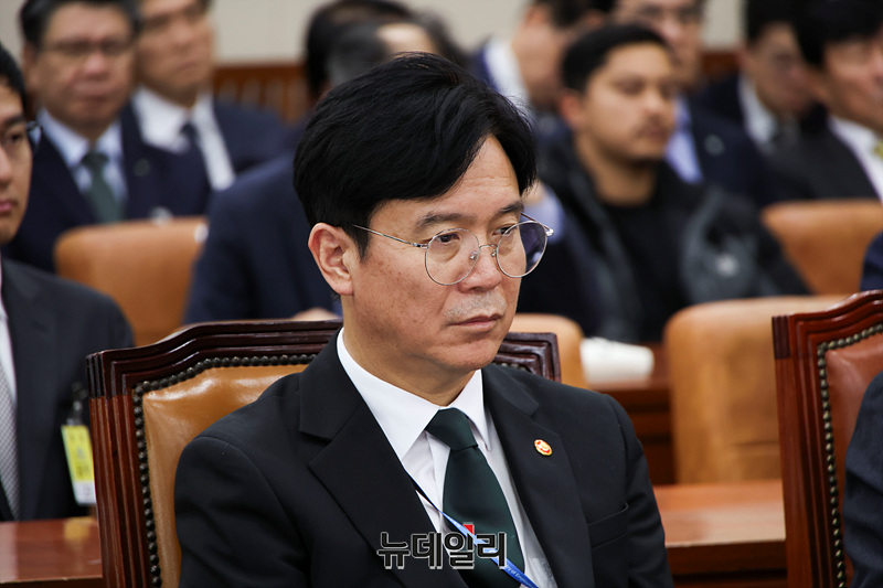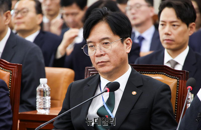 김영훈 고용노동부 장관이 30일 오후 국회에서 열린 기후에너지환경노동위원회 종합감사에 출석해 자리하고 있다.