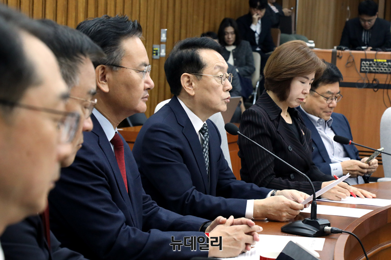 김도읍 국민의힘 정책위의장이 31일 오전 국회에서 열린 국정감사 대책회의에서 모두발언을 하고 있다.