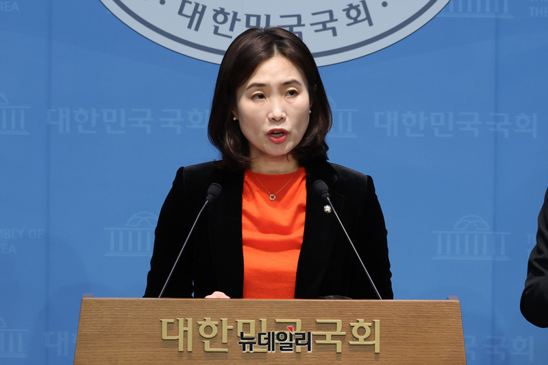 김소희 국민의힘 의원이 31일 국회 소통관에서 '전동킥보드 전면금지법' 발의 기자회견을 하고 있다.
