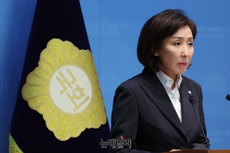 나경원 국민의힘 의원이 31일 국회 소통관에서 기자회견을 갖고 법사위 국정감사 및 현안 관련 발언을 하고 있다.