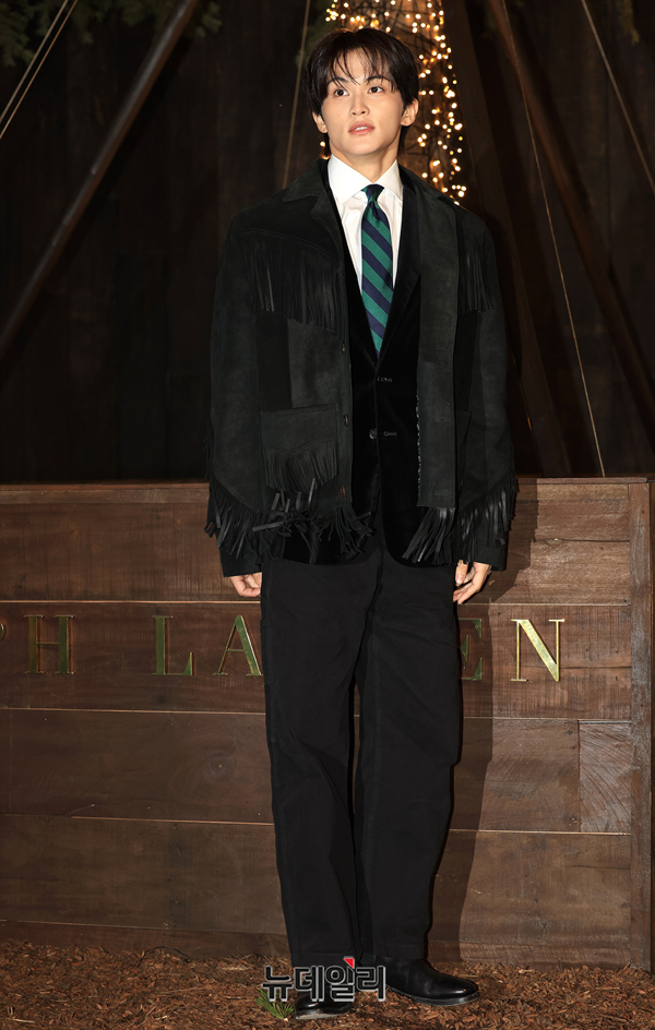 NCT 마크가 31일 오후 서울 성도구 성수동에서 열린 랄프 로렌 홀리데이 익스피리언스 오프닝 행사에 참석해 포즈를 취하고 있다. 랄프 로렌은 마운틴 리빙 테마를 바탕으로 특별한 홀리데이 무드를 선보였다.