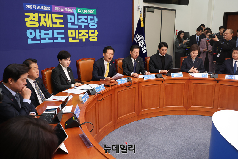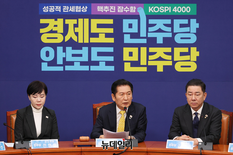정청래 더불어민주당 대표가 3일 오전 국회에서 열린 최고위원회의에서 모두발언을 하고 있다.
