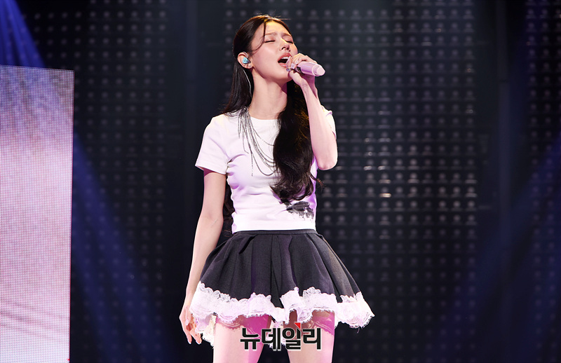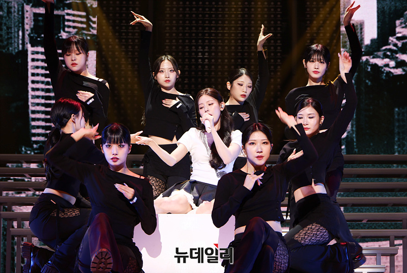 그룹 아이들 미연이 3일 오후 서울 용산구 블루스퀘어에서 열린 미니2집 '마이, 러버(MY, Lover)' 발매 기념 쇼케이스에서 무대를 선보이고 있다.