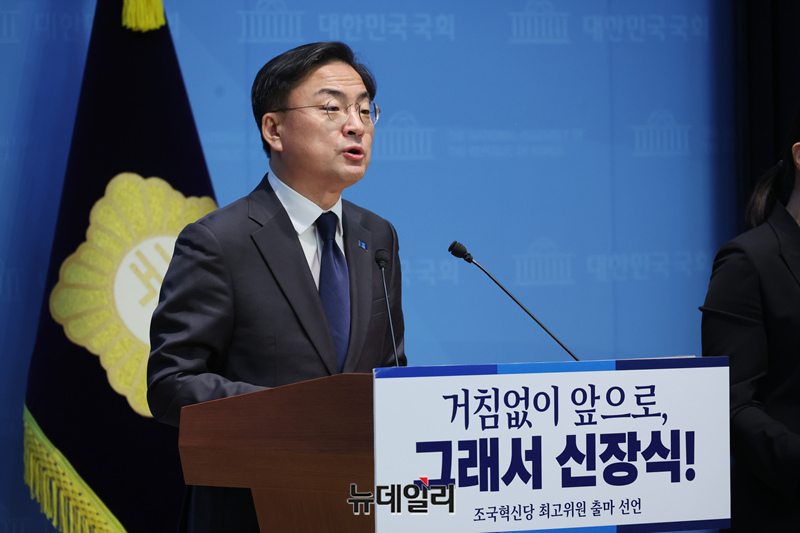 신장식 조국혁신당 의원이 6일 오전 국회 소통관에서 최고위원 출마선언을 하고 있다.