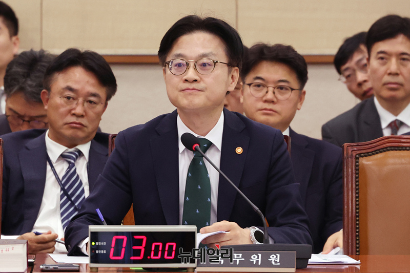 김정관 산업통상부 장관이 6일 국회 법제사법위원회 전체회의에 출석해 의원들의 질의에 답변하고 있다.