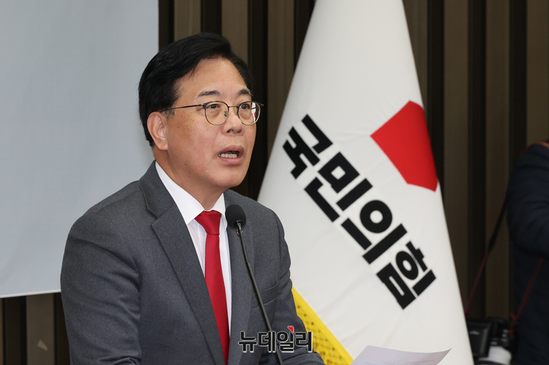 송언석 국민의힘 원내대표가 10일 오후 국회에서 열린 의원총회에서 모두발언을 하고 있다.
