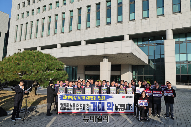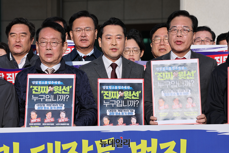 장동혁 국민의힘 대표 및 소속 의원들이 11일 오전 서울 서초구 대검찰청 앞에서 대장동 사건 항소 포기 규탄대회를 갖고 있다. (사진=국민의힘)