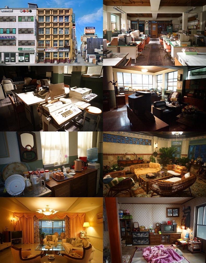 그러면서도 수입가구, 문구와 장식을 넣은 바닥, 세트팀이 직접 조립한 사무실 천장, 강진영이 해외 출장 갔다가 사왔다는 설정의 미국식 천장 조명, 60~70년대 미국 사무실에서 많이 볼 수 있는 둥근 대형 기둥벽 등으로 그의 미적 감각을 보여줬다. 또한 세트 내부 전체를 감싸는 녹색빛 석재를 구하기 위해 미술팀과 세트팀이 정말 많은 석재집을 발로 뛰며 찾아냈다.