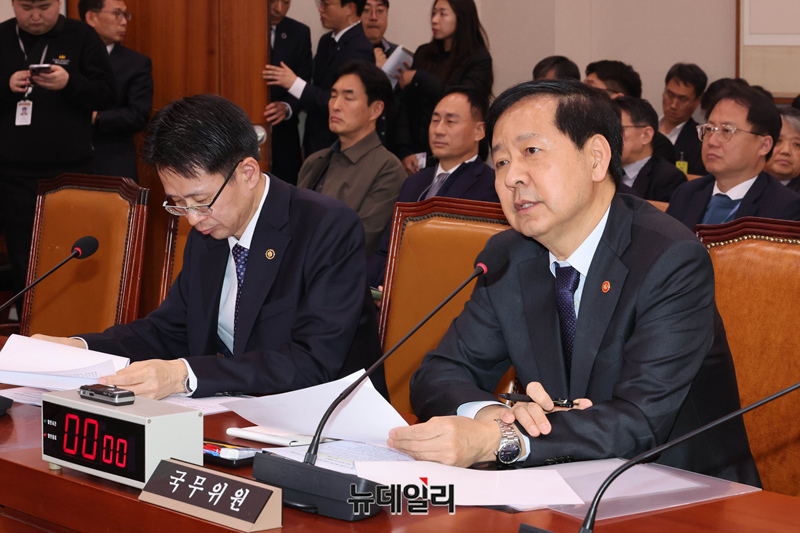 구윤철 경제부총리 겸 기획재정부 장관이 12일 국회에서 열린 법제사법위원회 전체회의에 출석해 의원 질의에 답변하고 있다.