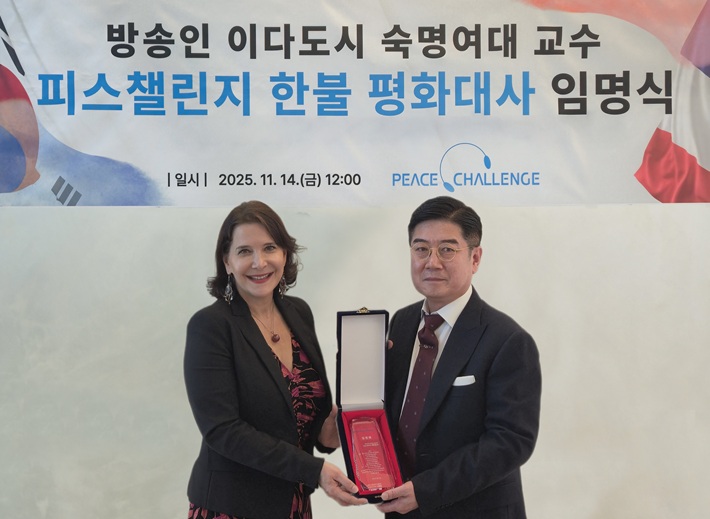 이어 "한·불 양국의 문화·예술·경제·교육 분야에 대한 깊은 이해와 경험을 지닌 이다도시 교수가 '피스챌린지 한불 평화대사'로 임명된 만큼 2026년 서울과 파리를 기점으로 펼쳐질 '노 워, 월드 피스' 케이팝 월드투어 콘서트가 한·불 양국의 우정과 경제·문화 협력 증진에 중추적인 역할을 할 것으로 기대한다"고 덧붙였다.