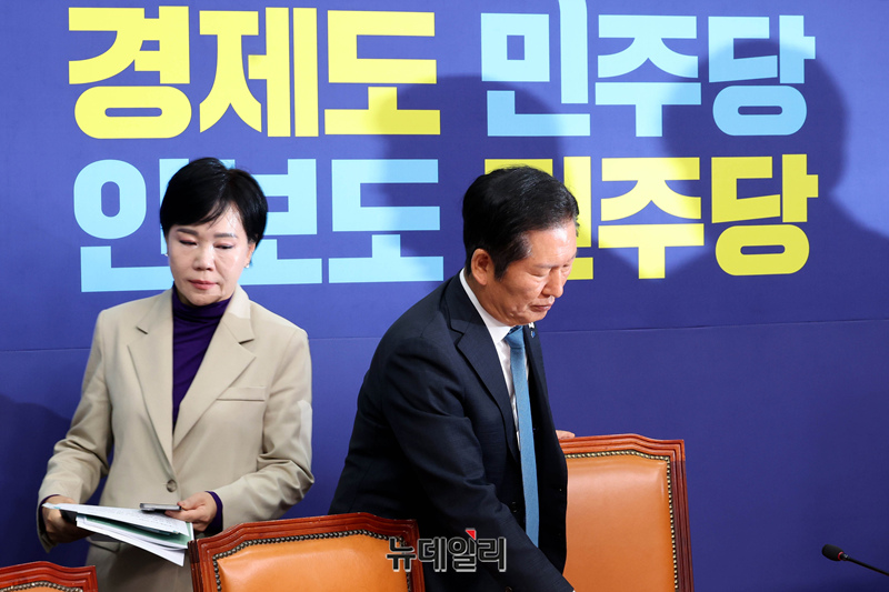 [포토] 최고위 참석하는 정청래 더불어민주당 대표