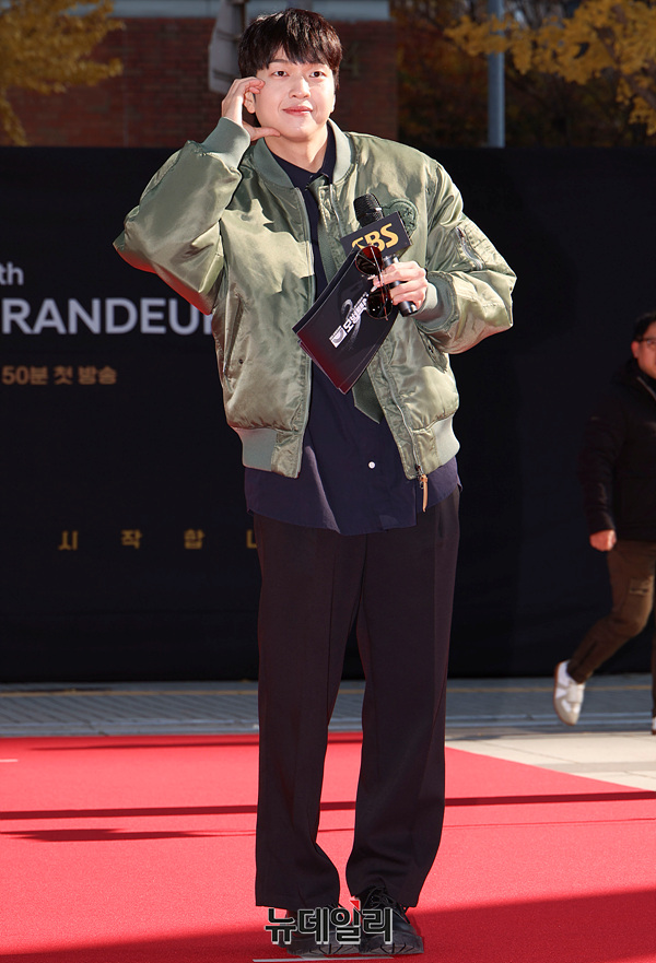MC 유재필이 18일 오후 서울 양천구 목동 SBS에서 열린 드라마 '모범택시3' 레드카펫에서 포즈를 취하고 있다.