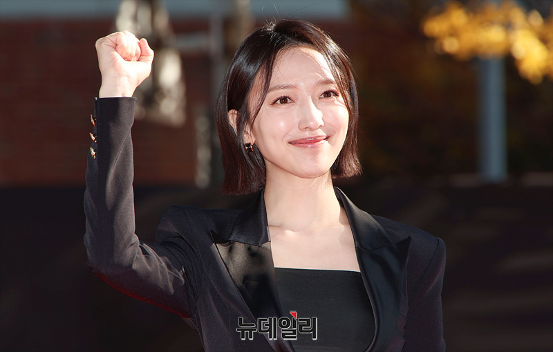 배우 표예진이 18일 오후 서울 양천구 목동 SBS에서 열린 드라마 '모범택시3' 레드카펫에서 포즈를 취하고 있다.