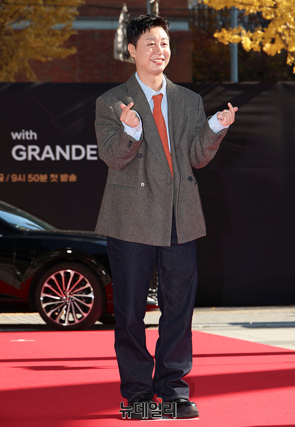 배우 배유람이 18일 오후 서울 양천구 목동 SBS에서 열린 드라마 '모범택시3' 레드카펫에서 포즈를 취하고 있다.