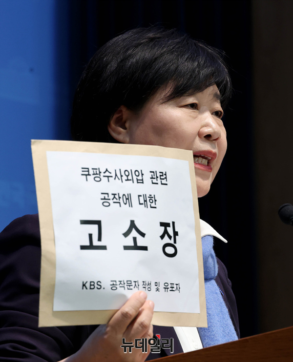 서영교 더불어민주당 의원이 19일 오전 국회 소통관에서 기자회견을 갖고 '쿠팡 상무와의 오찬 논란'에 대한 입장을 밝히고 악의적 공작이라고 주장하고 있다.