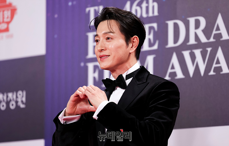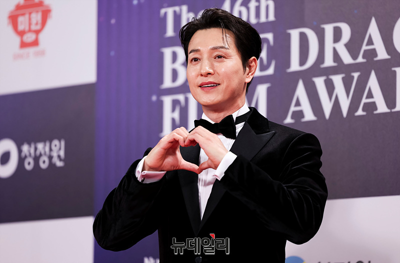 배우 정성일이 19일 오후 서울 여의도 KBS홀에서 열린 제46회 청룡영화상 시상식 레드카펫에서 포즈를 취하고 있다.